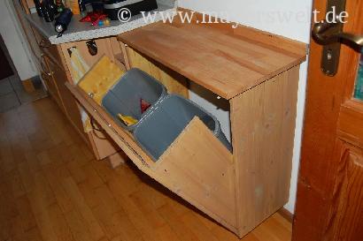 Verstecken sich innen zwei große Mülleimer zur Mülltrennung.