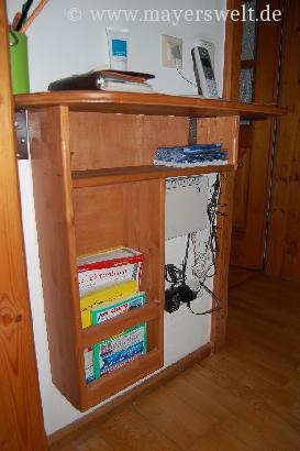 Bild 2 von 19Für den schmalen Gang ein passendes Telefonregal, damit Telefon, Telefonbücher und Router untergebracht sind. Alles sauber geleimt. << Vollbild >>